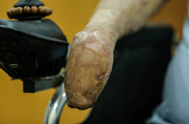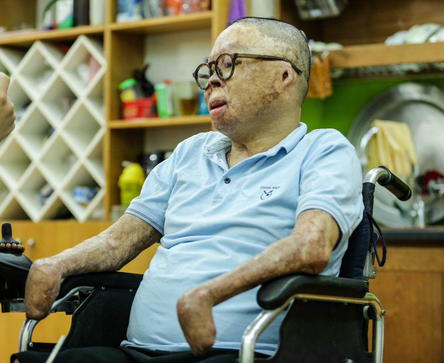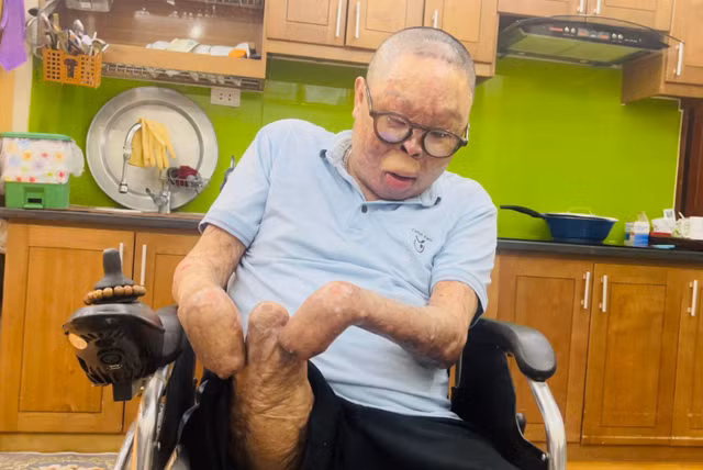 Anh Dương với khuôn mặt biến dạng và vĩnh viễn mất đi đôi tay, đôi chân.