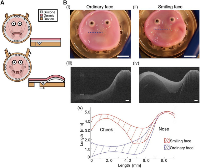 Các nhà nghiên cứu đã sử dụng silicon bên dưới lớp da mỏng để mô phỏng cơ bắp chịu trách nhiệm điều khiển nụ cười của con người. Trong tương lai, các nhà khoa học có thể sử dụng mô cơ nuôi cấy thay vì silicon để cải thiện biểu cảm khuôn mặt của robot.