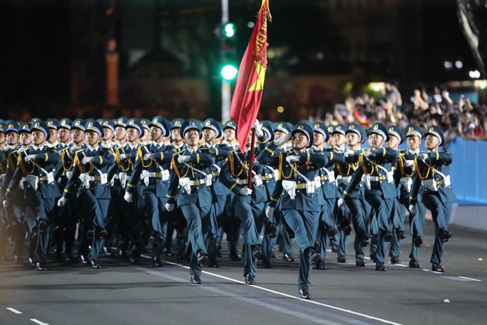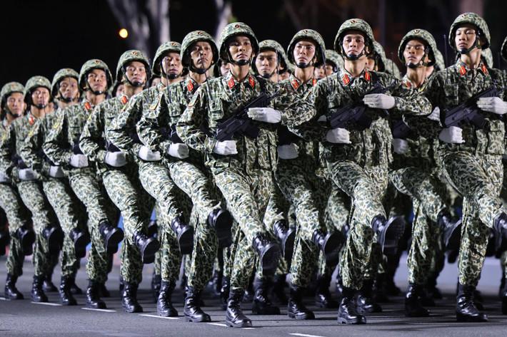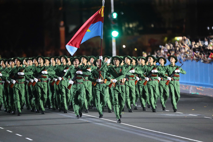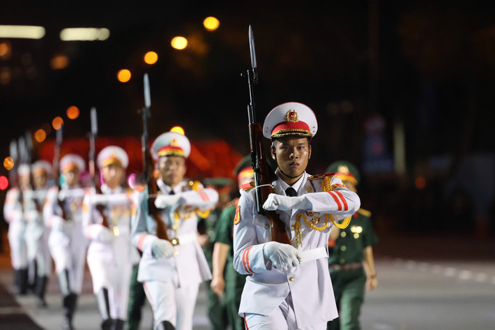 Hình ảnh các cán bộ chiến sĩ khỏe khoắn, rắn rỏi, hùng dũng động tác đều tăm tắp trong buổi hợp luyện diễu binh diễu hành khiến người dân theo dõi hết lời ngợi khen và cổ vũ nhiệt tình.