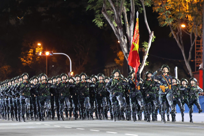 Lễ diễu binh, diễu hành chính thức vào 6 giờ 30 sáng 30/4 với sự tham gia khoảng 13.000 người. Nhằm đảm bảo an ninh - trật tự, an toàn giao thông phục vụ tổng hợp luyện diễu binh 30/4, Công an TP Hồ Chí Minh đã tổ chức điều chỉnh, phân luồng trên nhiều tuyến đường gần Cầu Ba Son, Nguyễn Bỉnh Khiêm, Đinh Tiên Hoàng, Tôn Đức Thắng, Mạc Đĩnh Chi, Hai Bà Trưng, Phạm Ngọc Thạch, Pasteur, Nam Kỳ Khởi Nghĩa...