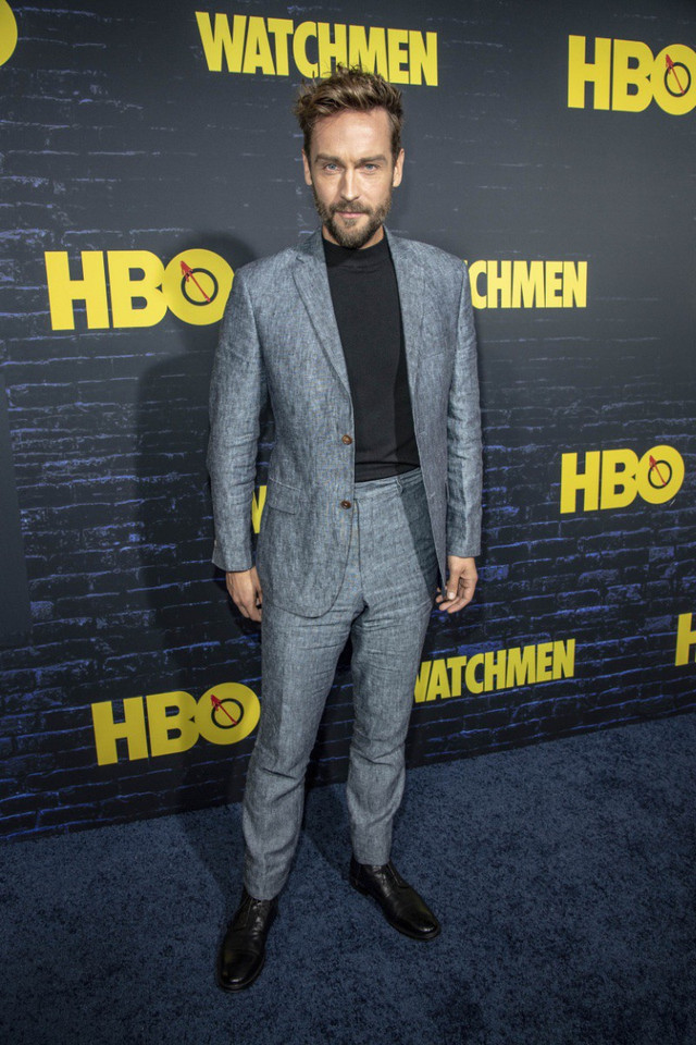 GhimTom Mison diện bộ vest vải lanh với áo len cổ lọ giả. Ảnh: EugenePowers / Hình ảnh ký gửi