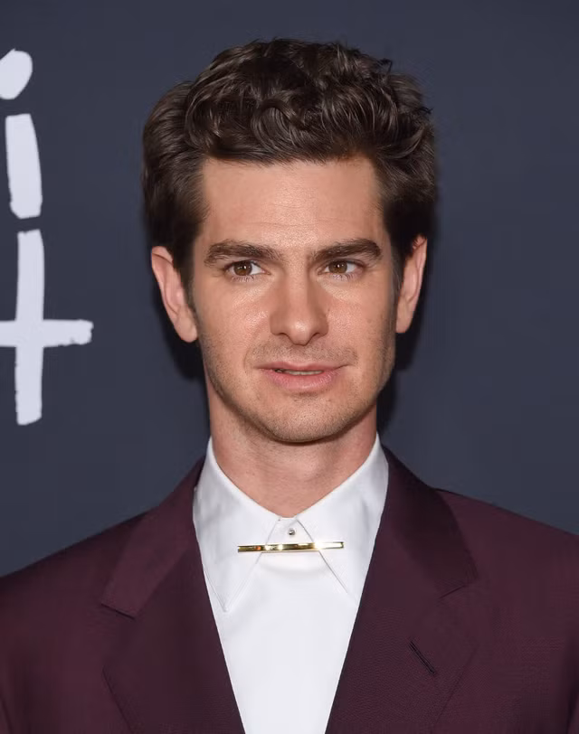 GhimAndrew Garfield không đeo cà vạt và đeo một chiếc vòng cổ đầy phong cách.