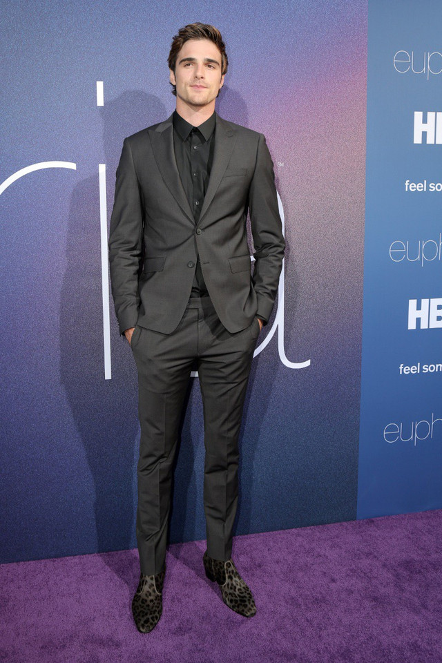 Jacob Elordi mặc vest không cà vạt tại buổi ra mắt phim Euphoria ở Los Angeles.