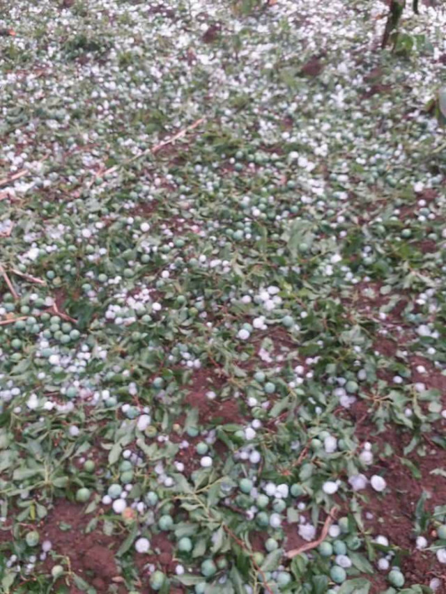 | Trận mưa đá làm tan hoang nhiều vườn mận, mơ, nông sản của người dân. Ảnh: Facebook Hoa Anh Túc. |