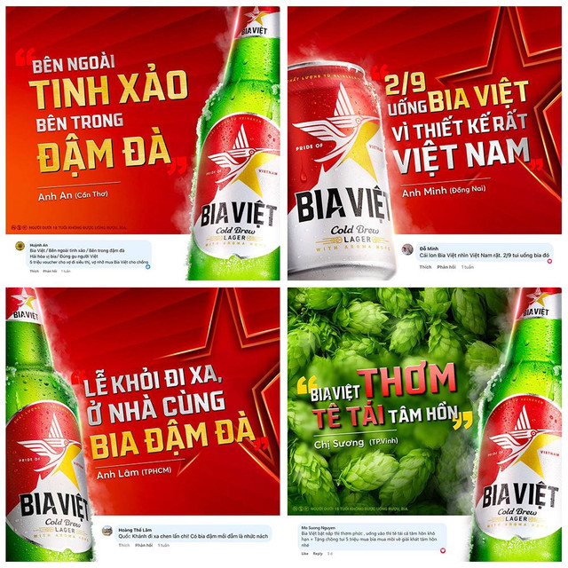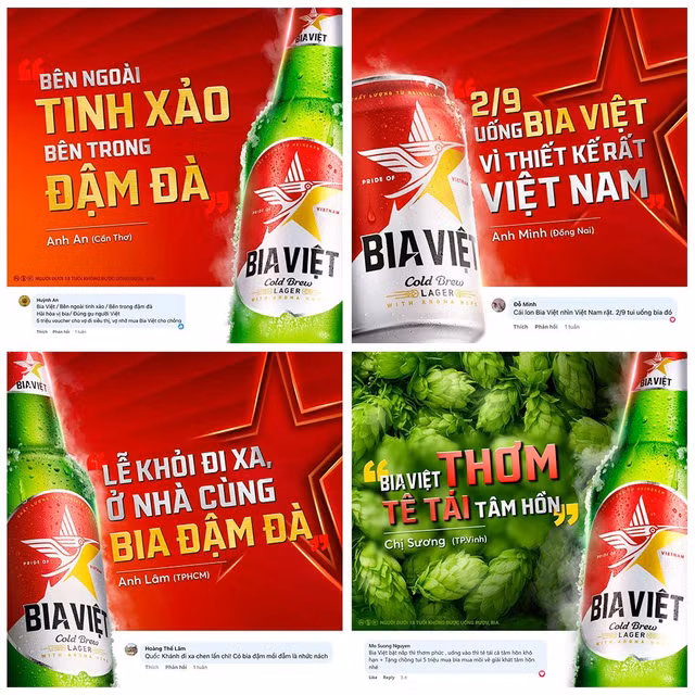 Cụ thể, trong 17 tuần liên tiếp kể từ ngày 13/8/2023, Bia Việt mời người tiêu dùng trên khắp đất nước cùng thưởng thức và chia sẻ cảm nhận thật về phiên bản Bia Việt Mới. Cảm nhận của người tiêu dùng sẽ trở thành chất liệu cho chiến dịch quảng cáo Bia Việt trong giai đoạn ra mắt phiên bản mới. Cách quảng bá đột phá này giúp Bia Việt liên tục gây bão mạng xã hội khi nhận về hơn 3.500 nhận xét “đậm chất Việt” từ giới mộ điệu bia dành cho các cải tiến của sản phẩm chỉ trong vòng 5 tuần khởi động chiến dịch. Anh Thịnh (Yên Bái) đánh giá thiết kế Bia Việt Mới “nhìn đơn giản nhưng rất sang nhờ hài hoà màu đỏ - bạc - xanh, hình ảnh chim lạc được cách tân hiện đại, đặt đâu là sáng cả bàn tới đó”. Huỳnh An (Cần Thơ), một người dùng khác cũng dành những lời nhận xét chất lượng cho Bia Việt Mới: “Bên ngoài tinh xảo, bên trong đậm đà. Hài hòa vị bia, đúng gu người Việt”. Đỗ Minh (Đồng Nai) cũng tấm tắc khen: “Cái lon bia nhìn Việt Nam rặt”. Trong khi đó, Chánh Thiện (An Giang) không tiếc lời bình luận: “Mẫu mã xứng đáng điểm mười. Vị càng đậm chất con người Việt Nam”.