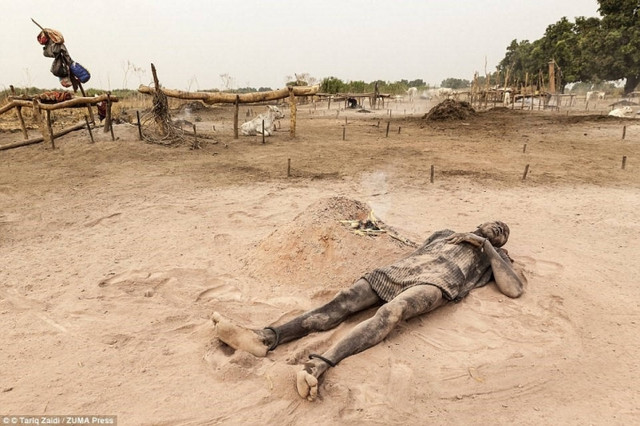 Người Mundari có thói quen nằm giữa đống tro bụi của phân bò khô để... thư giãn. Theo họ, phân bò khô giúp bảo vệ người và bò khỏi ánh nắng thiêu đốt ở Sudan. Phân bò được gom lại thành những đống cao để đốt. Phần tro sau đó được sử dụng như một chất khử trùng và kem chống nắng làm đẹp cho người dân dưới cái nóng 46 độ C.