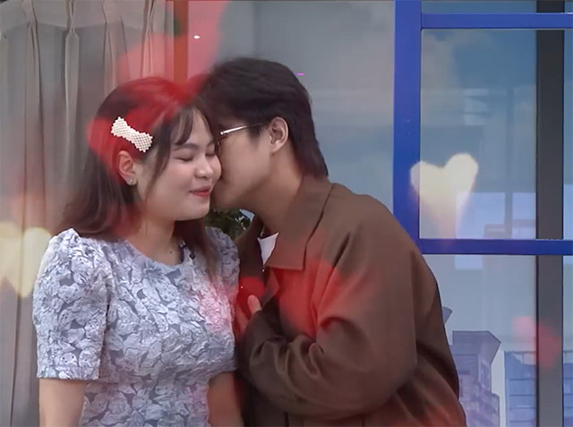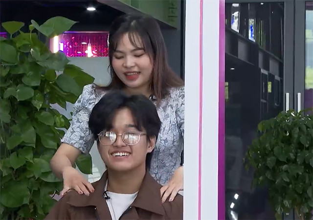 Tiếp đó, đàng gái thực hiện thử thách của chương trình khi mát xa vai cho bạn trai khiến anh chàng vui sướng tận hưởng.