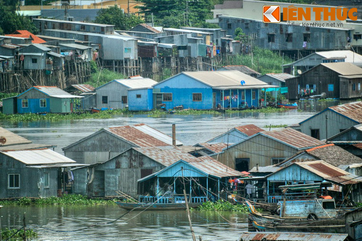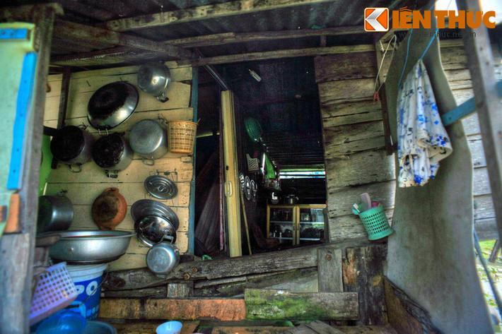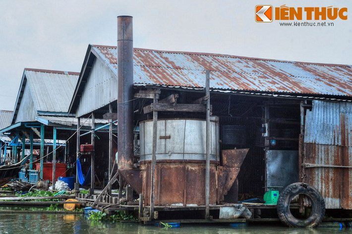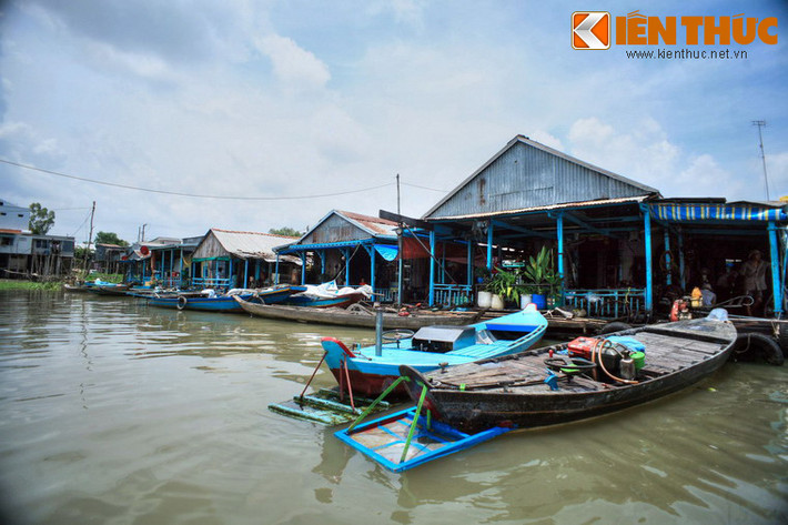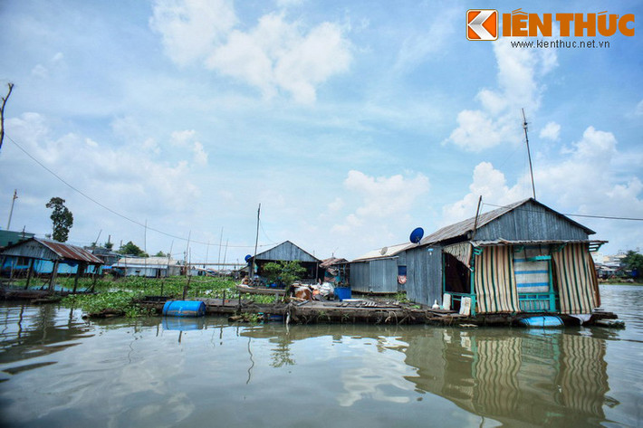 Cuộc sống của các hộ gia đình ở làng nổi được gói gọn trên những căn nhà nổi có diện tích chừng 30-40 mét vuông, bên trong có đầy đủ tiện nghi. Dưới gầm nhà là lồng bè nuôi cá đóng bằng gỗ bọc lưới inox, đáy sâu khoảng 5 mét.