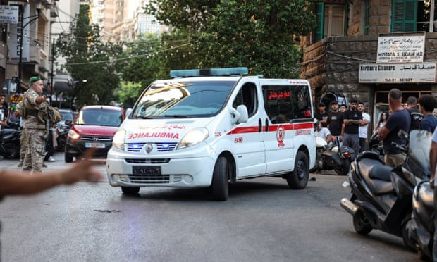 Xe cứu thương xuất hiện ở thủ đô Beirut của Lebanon sau vụ nổ hàng loạt nhiều máy nhắn tin khiến nhiều người thương vong. Ảnh: Reuters