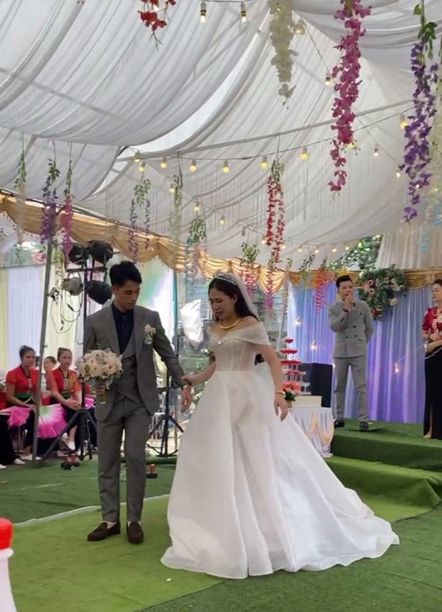 Cô dâu sau đó thay sang trang phục váy cưới hiện đại.