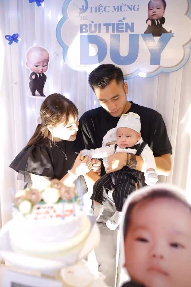 Cầu thủ Bùi Tiến Dụng và bà xã Mai Thùy Trinh cũng là cặp đôi có con trước khi cưới. Thùy Trinh kinh doanh trong lĩnh vực thời trang và mỹ phẩm. Cô và ông xã cùng sinh năm 1998, hiện tại con trai đầu lòng được hơn 4 tuổi.