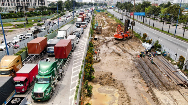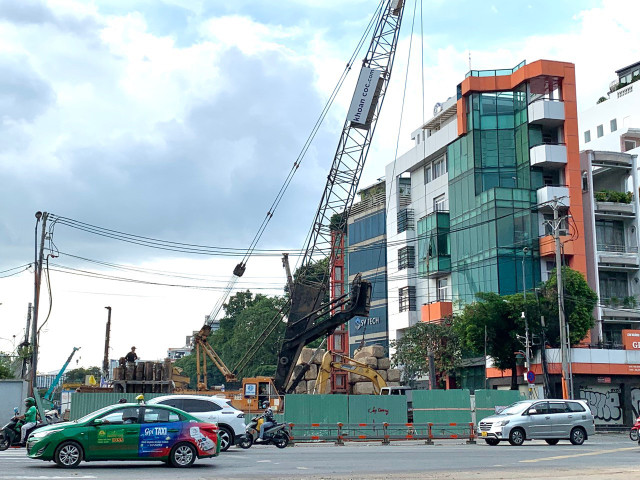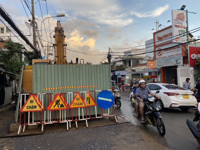 Lô cốt tại giao lộ Nguyễn Văn Linh - Nguyễn Hữu Thọ, quận 7. Đây là dự án liên tục bị chậm tiến độ khiến người dân rất mệt mỏi. Dự án khởi công vào tháng 6/2020, với tổng vốn 830 tỷ đồng (giai đoạn 1), dự kiến hoàn thành sau 2 năm nhưng hiện mới đạt hơn 40%.