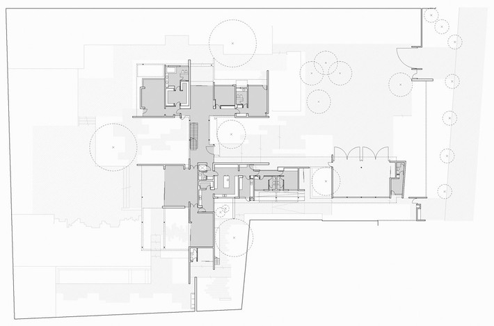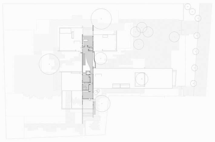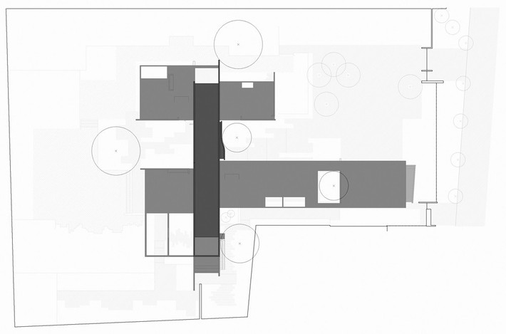 Không gian ngôi nhà được thiết kế theo dạng hình chữ “H” phù hợp với hình dạng của khu đất, không làm ảnh hưởng đến thảm thực vật xung quanh.