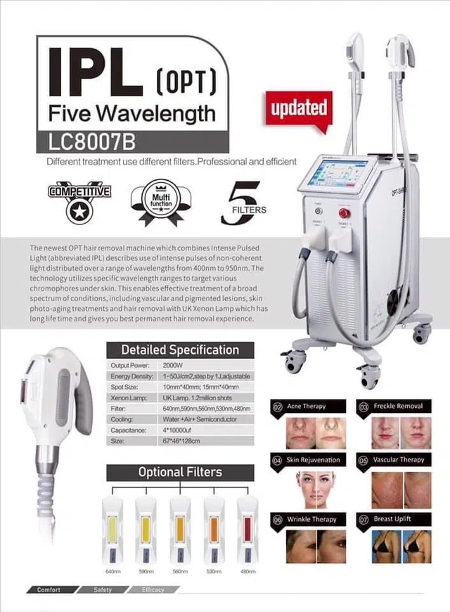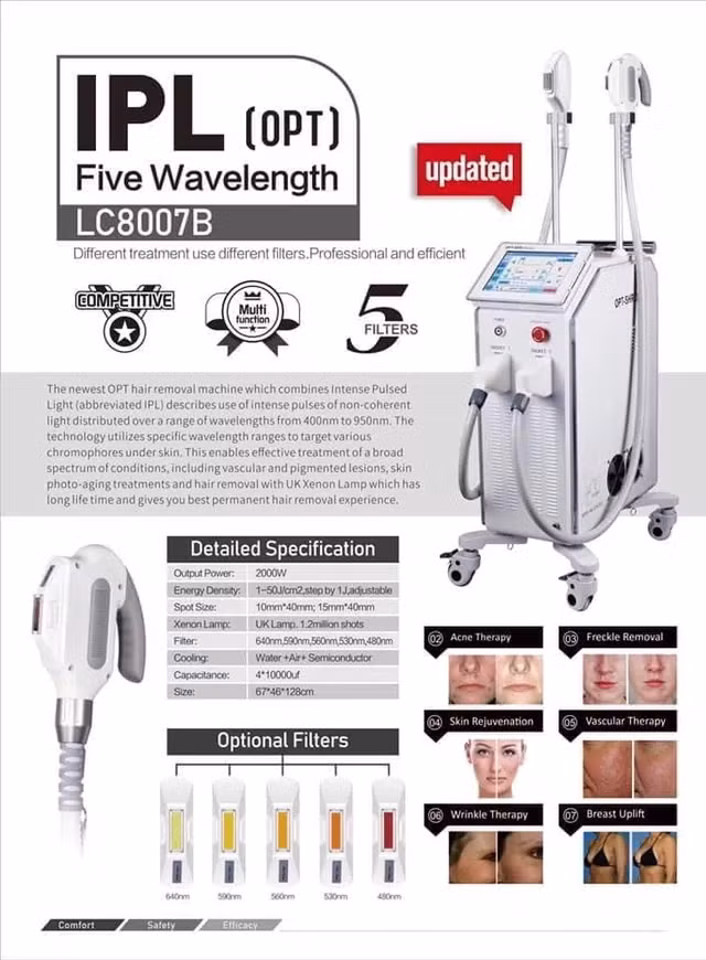 Công nghệ triệt lông OPT (Optimal Pulses Light) được phát triển dựa trên nền tảng công nghệ IPL (Intense Pulsed Light) kết hợp với các bước sóng ánh sáng được tối ưu hóa từ 430nm đến 1200nm, mang đến hiệu quả triệt lông vượt trội, nhanh chóng và an toàn cho mọi loại da.