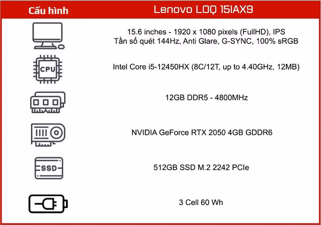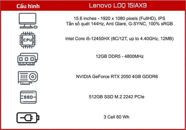 Lenovo LOQ 15IAX9 - 15,4 triệu đồng