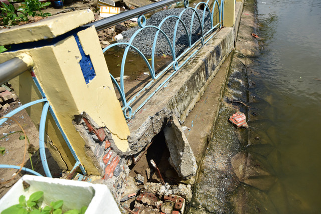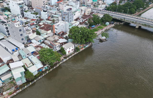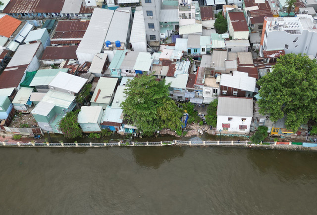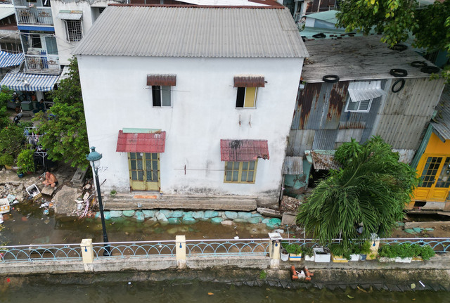 Hơn 1 tuần trước, một đoạn bờ phải kênh Thanh Đa (phường 25, quận Bình Thạnh), cách hạ lưu cầu Kinh khoảng 50m bị sạt lở khiến nhiều nhà bị sụt lún, hư hỏng gây nguy hiểm cho người dân.