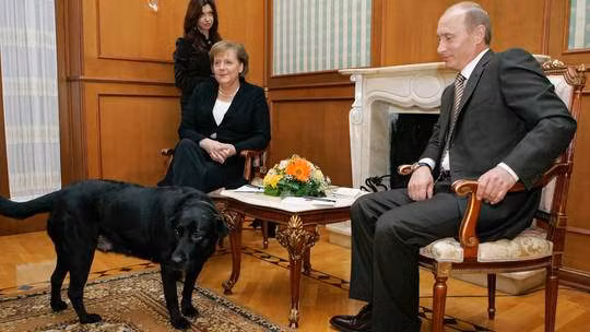 Cách đây 17 năm, chú chó giống Labrador màu đen bất ngờ xuất hiện trong một cuộc hội đàm giữa ông Putin và bà Merkel ở thành phố Sochi, Nga. Bà Merkel từng bị thương do chó cắn vào năm 1995 và kể từ đó rất sợ chó.