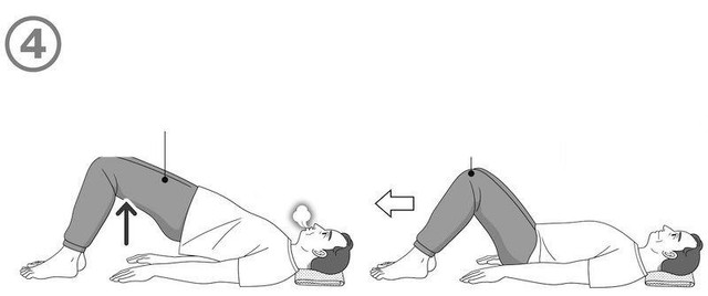 - Bước 2: Thở ra, từ từ nâng mông lên trong 5 giây, giữ nguyên tư thế trong 10 giây.