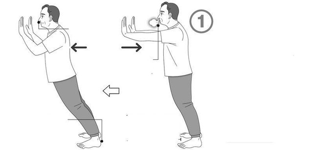 - Bước 1: Đứng thẳng đối diện với tường, hai tay duỗi ngang vai.