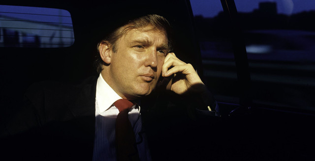 Ông Trump nói chuyện điện thoại trên xe sau khi công bố một kế hoạch xây dựng ở bang New York vào ngày 18/11/1985. Ảnh: Redux
