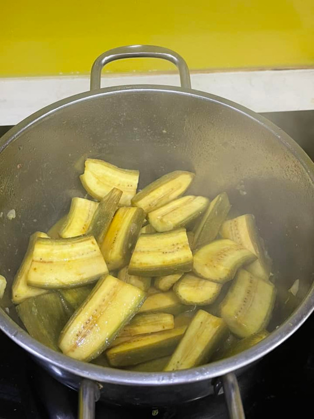 Phi thơm hành tỏi rồi cho chuối xanh vào xào. Thêm bột canh và hạt nêm rồi thêm khoảng 2,5-3 lít nước vào ninh. Khi nước sôi thì cho xương lươn vào ninh cùng cho ngọt nước. Đậy vung và ninh chuối khoảng 30 phút thì cho lươn, đậu và thịt ba chỉ và om thêm 25-30 phút cho lươn chín mềm và ngấm gia vị.