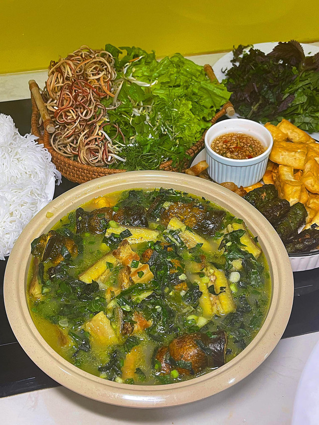 Lươn om chuối đậu ăn cùng cơm trắng hoặc bún đều thơm ngon, hấp dẫn.