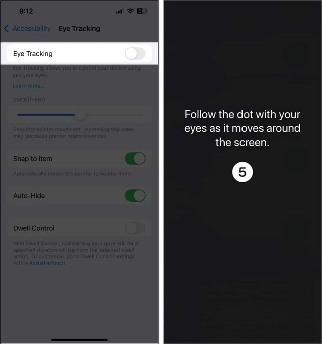 Thiết lập tính năng Theo dõi mắt trên iPhone và iPad chỉ mất khoảng một phút. Để làm như vậy, bạn phải kích hoạt tính năng này trên thiết bị của mình và hoàn tất quá trình hiệu chỉnh.