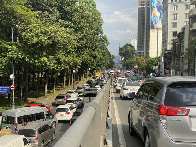Kẹt xe từ trên cầu vượt Lăng Cha Cả đến dạ cầu.
