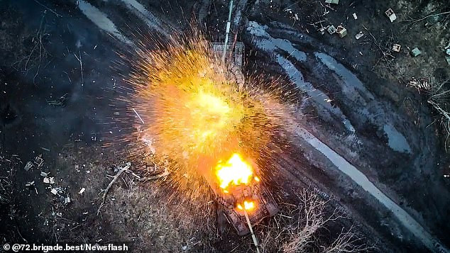 Xe tăng phát nổ trong xung đột ở Ukraine.