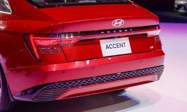 Hyundai Accent 2025 có đèn pha LED tích hợp nối liền với lưới tản nhiệt, mang phong cách giống Elantra và Sonata. Gương hậu hai tông màu tích hợp đèn báo rẽ, và mâm 15 hoặc 16 inch tùy phiên bản. Đường dập tinh tế và đèn LED 3D vi cá ở đuôi xe tạo vẻ thẩm mỹ hiện đại, cùng với ống xả được giấu khéo léo, mang đến dáng vẻ thể thao và năng động.