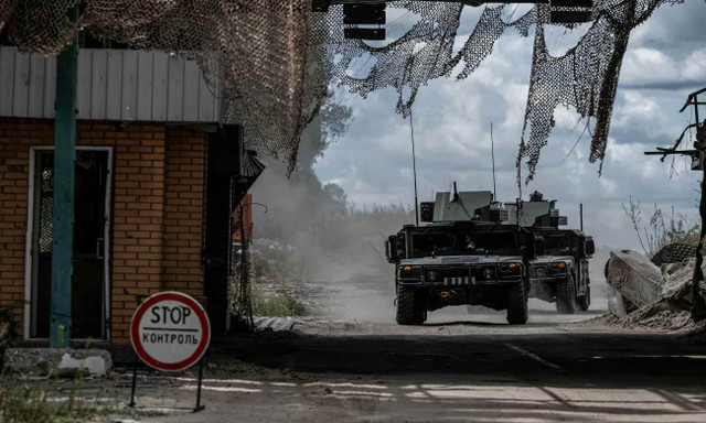 Xe bọc thép Ukraine ở gần biên giới Nga (ảnh: CNN)