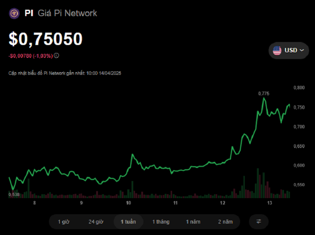Giá Pi duy trì trên mốc 0,7 USD trong 2 ngày cuối tuần. Pi Network tiếp tục có khởi đầu tuần mới tích cực khi giá neo quanh vùng 0,74 – 0,75 USD/Pi trong sáng 14/4.