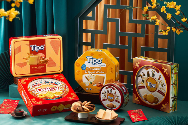 Bộ sản phẩm Tết từ các nhãn hiệu Tipo, Gold Daisy.