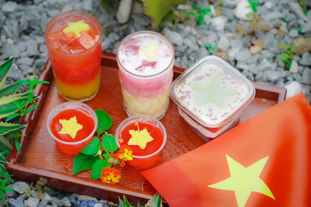 Các quán cà phê còn làm mới thực đơn và trang trí một số loại bánh, đồ uống hình lá cờ Tổ quốc bằng bột thực phẩm. Đây cũng là chi tiết khiến nhiều khách hàng, đặc biệt là giới trẻ và du khách quốc tế thích thú check-in.