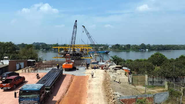 Đường dẫn với cầu đã thành hình. Hiện việc thi công cầu đang được đẩy nhanh tiến độ và phấn đấu hoàn thành trong năm 2024. “Bà con ở đây mong chờ từng ngày để cầu xây xong. Cầu khi hoàn thành không những giúp người dân đi lại thuận tiện, dễ dàng mà còn giúp phát triển kinh tế của địa phương”, anh Nguyễn Phú người dân Đồng Nai cho biết.