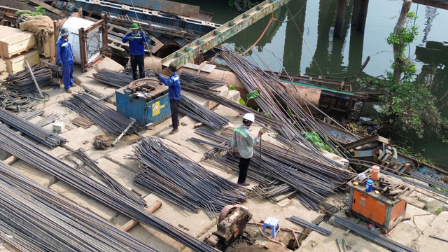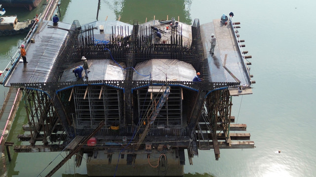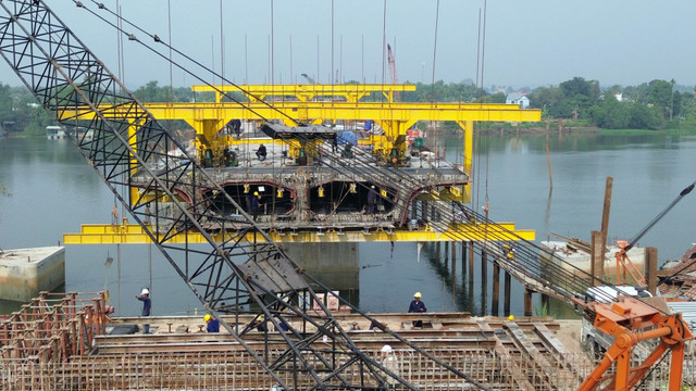 Những ngày cuối tháng 1, trên công trường dự án cầu Bạch Đằng 2 bắc qua sông Đồng Nai, không khí lao đông đang rất nhộn nhịp, khẩn trương. Hiện tại, cây cầu kết nối Bình Dương và Đồng Nai đang lộ dần hình hài.