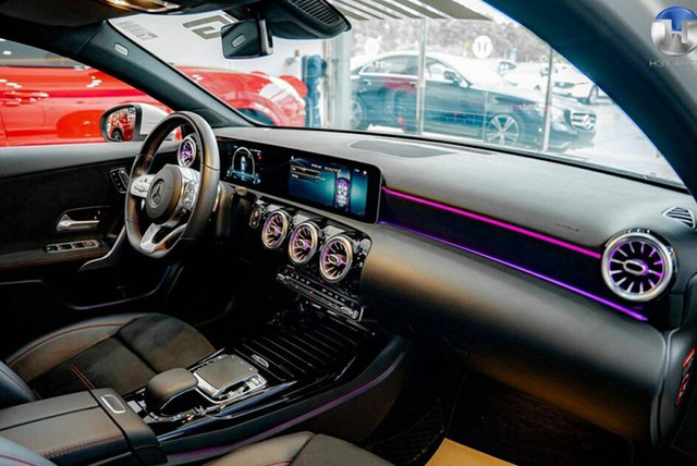 Nội thất A 35 4MATIC sedan mang cảm hứng từ tương lai cao cấp hướng đến sự cao cấp vượt trội. Hệ thống đèn viền 64 màu tùy chỉnh theo ý thích. Chất liệu trên xe đa phần là da lộn, ghế ngồi thể thao, có phím tuỳ chỉnh chế độ lái…