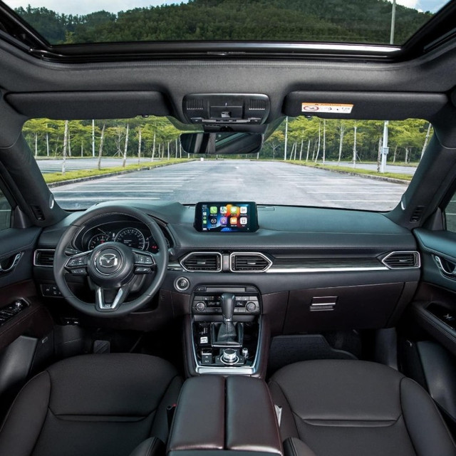 Hệ thống thông tin, giải trí gồm: Mazda Connect, màn hình giải trí trung tâm 8 inch, hệ thống 10 loa Bose cao cấp, kết nối điện thoại thông minh, cổng USB cho cả hàng ghế sau. Cửa sổ trời được trang bị nâng cấp cho nội thất Mazda CX-8 thoáng đãng hơn. Hàng ghế thương gia độc lập với bệ tỳ tay riêng, tích hợp nút điều khiển sưởi, cổng sạc USB, hộc chứa đồ rộng và có ngăn để cốc thuận tiện.