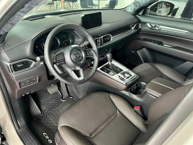 Điểm nhấn về nội thất của Mazda CX-8 chính là sự sang trọng và đẳng cấp với sự kết hợp giữa chất liệu da Nappa cao cấp và vân trang trí vật liệu gỗ cây Ayous. Bên cạnh đó là hàng loại các trang bị tiện nghi như: đèn LED nội thất, sưởi vô lăng, sạc không dây, ghế lái nhớ vị trí, hàng ghế trước chỉnh điện, chức năng sưởi, hàng ghế thứ 2 trượt và ngã lưng, điều hòa 3 vùng độc lập, màn hình hiển thông tin trên kính lái ADD, phanh tay điện tử tích hợp Auto Hold, gương chiếu hậu chống chói tự động.