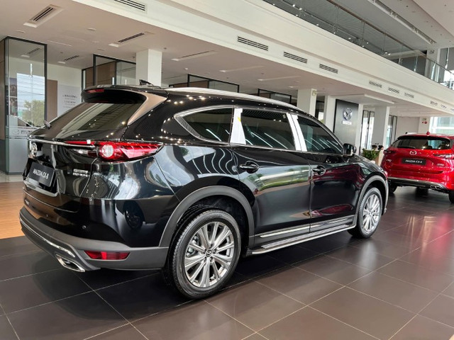 Mazda CX-8 có ngoại hình to lớn, hầm hố đúng chất của một mẫu SUV 7 chỗ cỡ lớn với kích thước tổng thể dài x rộng x cao là 4900 x 1840 x 1730 mm, đi kèm bộ mâm 19 inch kích thước lớn.