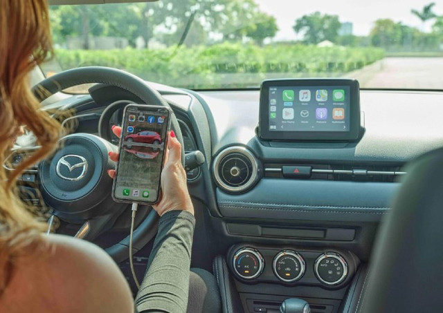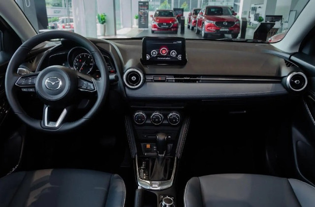 Trong khoang lái của Mazda2 mới lần này có thêm màn hình HUD, kết nối Apple CarPlay và Android Auto. Với màn hình cảm ứng 7 inch, trên xe còn có nhiều trang bị giải trí tiêu chuẩn như kết nối AUX, USB, 4 loa âm thanh và hệ thống Mazda Connect.