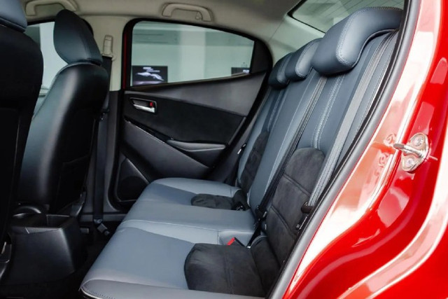 Di chuyển ra phía sau, hông xe Mazda2 mới có thiết kế mượt mà, tạo dáng dài và thon không khác gì các mẫu xe sedan tầm hạng sang, dù kích thước tổng thể xe không có thay đổi đáng kể so với Mazda2 đời trước. Mâm xe có kích thước 15 inch, thiết kế 8 chấu kép mang phong cách khác hẳn Mazda2 thế hệ trước. Cách thiết kế mới này giúp xe trở nên trẻ trung và thể thao hơn trước.