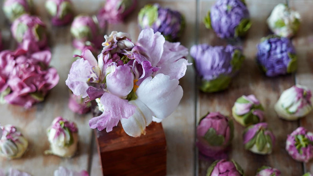 Bông hoa được làm từ kem bơ và giấy gạo.