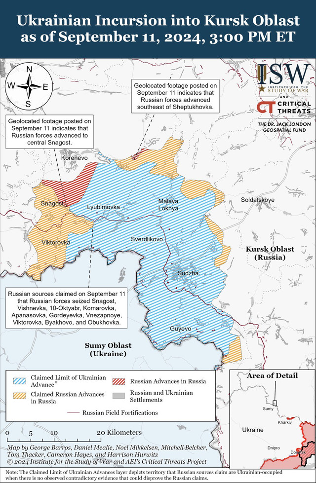 ISW đánh giá, trong những ngày đầu phản công, Nga có thể đang ưu tiên kiểm soát các khu vực mang ý nghĩa chiến thuật, từ đó tạo bước đệm trước khi dồn toàn lực đẩy lùi Ukraine khỏi vùng Kursk.