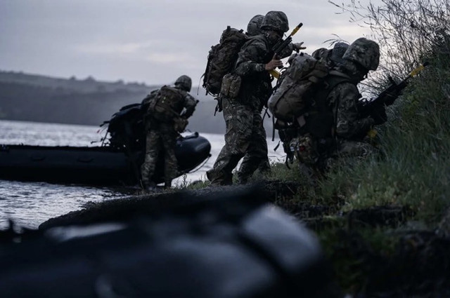 Các binh sĩ Ukraine được đặc nhiệm Anh huấn luyện phương pháp tác chiến, vượt sông.
