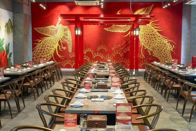 Không gian mang sắc đỏ cổ điển đặc trưng của Buffet Hải sản Cửu Vân Long