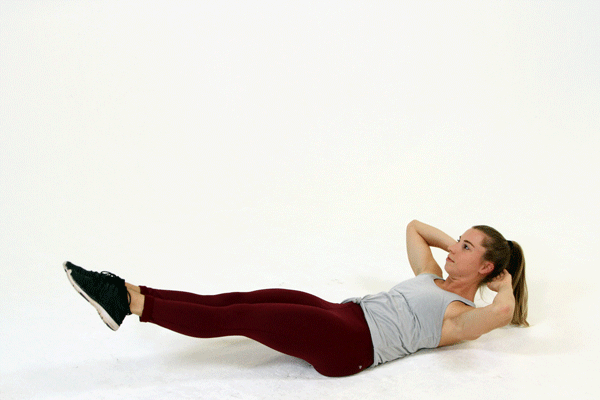 1. Ngồi trên sàn, gập đầu gối, hơi ngả người ra sau và giữ thẳng lưng.