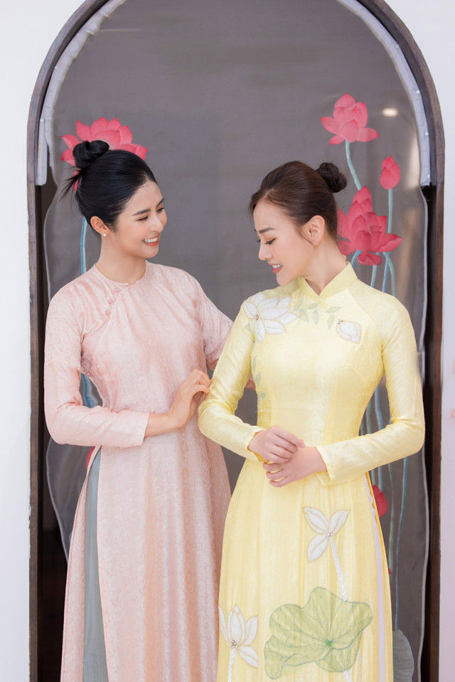 Phương Oanh rất thích hoa sen nên ngỏ ý muốn Ngọc Hân thiết kế áo dài lấy cảm hứng từ loài hoa đặc trưng của mùa hè, cũng là biểu tượng cho vẻ đẹp bình dị, trong sáng và tinh thần kiên cường, mãnh liệt của con người. Nàng hậu đã nhanh chóng lên ý tưởng về thiết kế và dự kiến sẽ chuẩn bị 3 bộ áo dài khác nhau cho người bạn thân thiết.