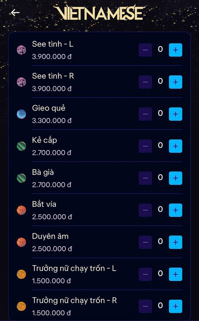 Có thể thấy Hoàng Thùy Linh đặt nhiều tâm huyết cho Vietnamese Concert lần này. Trưa ngày 8/9, vé của liveshow được chính thức mở bán với các mức giá khác nhau từ 1,5 triệu VNĐ đến 3,9 triệu VNĐ. Tên các hạng vé cũng được lấy từ tiêu đề những bản hit của cô như See tình, Trưởng nữ chạy trốn, Bắt vía, Duyên âm, Gieo quẻ... Ngoài ra, khán giả mua những mức vé khác nhau cũng được tặng kèm quà khác biệt, từ túi tote, áo, lichtstick đến cả bánh trung thu.