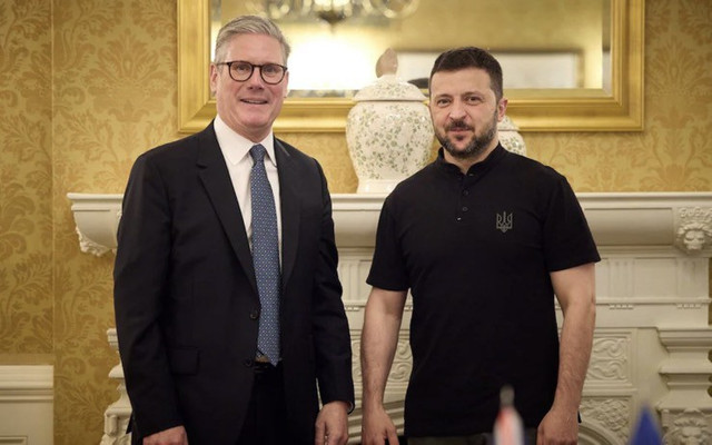 Tổng thống Ukraine Volodymyr Zelenksy (phải) chụp ảnh cùng Thủ tướng Anh Keir Starmer tại hội nghị thượng đỉnh NATO ở Mỹ.